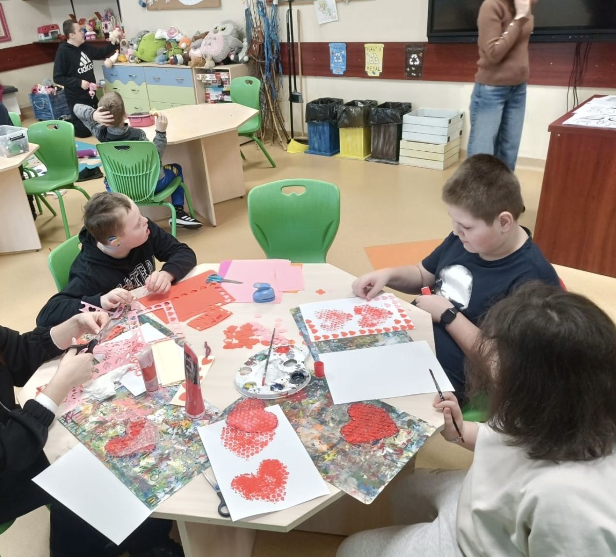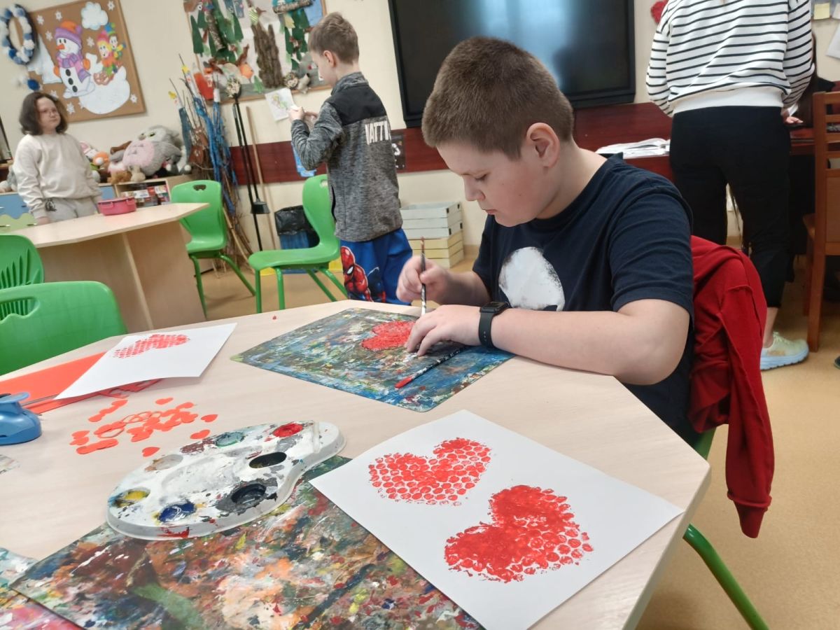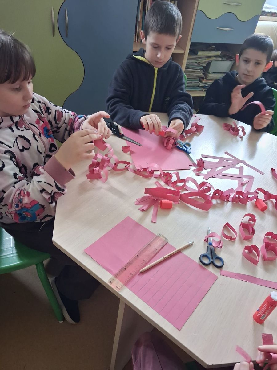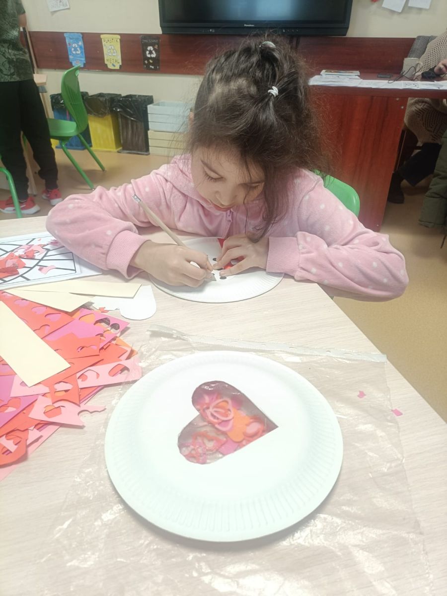 Z tej okazji w naszej świetlicy panowała miła i serdeczna atmosfera. Rozmawialiśmy o tym, czym jest przyjaźń, miłość i szacunek do drugiego człowieka. Uczniowie z zaangażowaniem wykonywali różnorodne prace plastyczne. Nie zabrakło czerwonych dekoracji oraz wspólnej zabawy.
