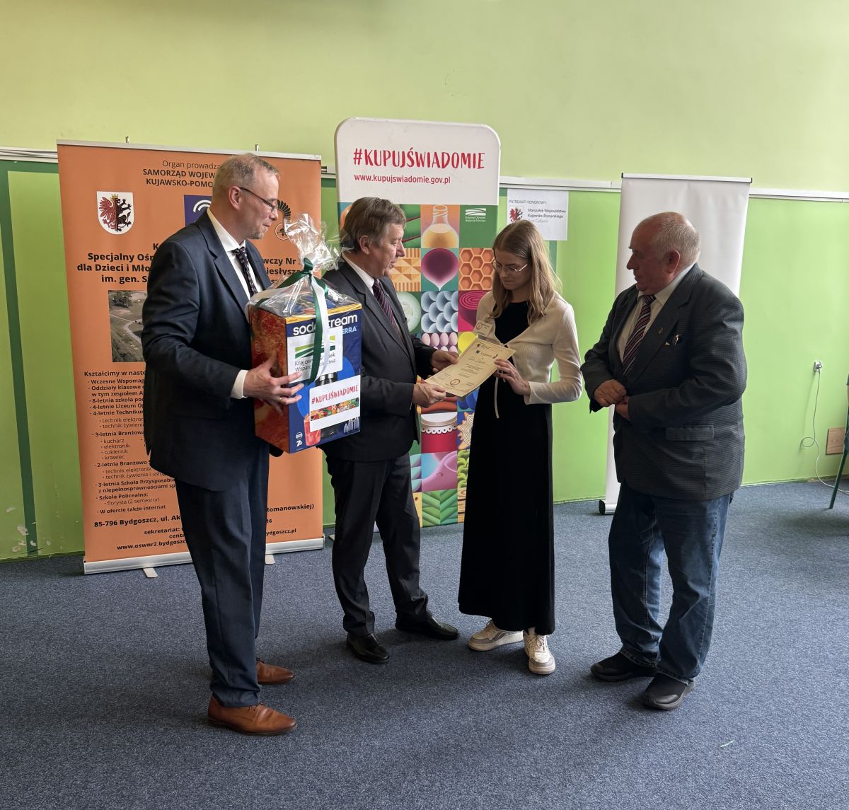 W dniach 15 -16 kwietnia br. w Bydgoszczy odbył się XVIII Ogólnopolski Konkurs Wiedzy Kucharskiej. Naszą placówkę wraz z opiekunami reprezentowały uczennice : Zosia Stępień i Oliwia Haba. Konkursowe zmagania zakończyły się zajęciem III miejsca czego dokonała Zosia Stępień. Uczestnicy konkursu mieli również okazję zwiedzić Bydgoszcz oraz poznać historię miasta.